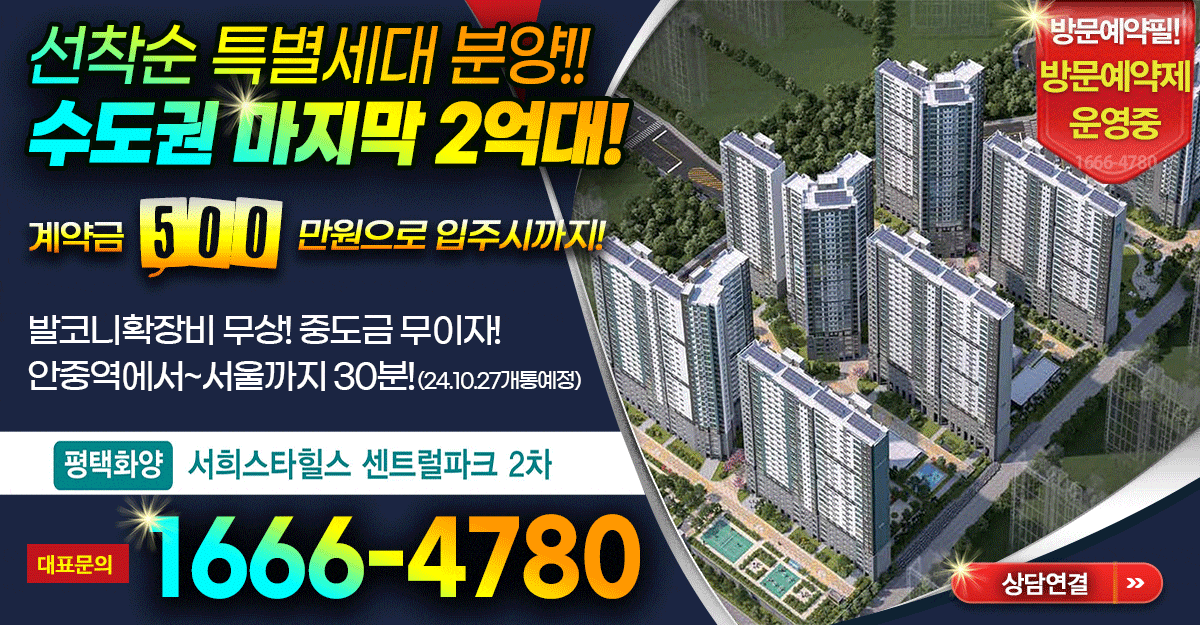 홈 방문예약 사업개요 배치도 입지안내 개발호재 커뮤니티 평면안내 언론보도 X 선착순 특별혜택 일반분양 성함 *전화번호 *010-0000-0000방문/상담 선택 *방문/상담 선택예약방문전화상담유형을 선택해주세요예약예약일시문의사항0 / 180개인정보 수집 및 이용 동의에 체크해주세요 *상담을 위해 기본적인 개인정보 제공에 동의합니다접수하기 홈 방문예약 사업개요 배치도 입지안내 개발호재 커뮤니티 평면안내 언론보도 X